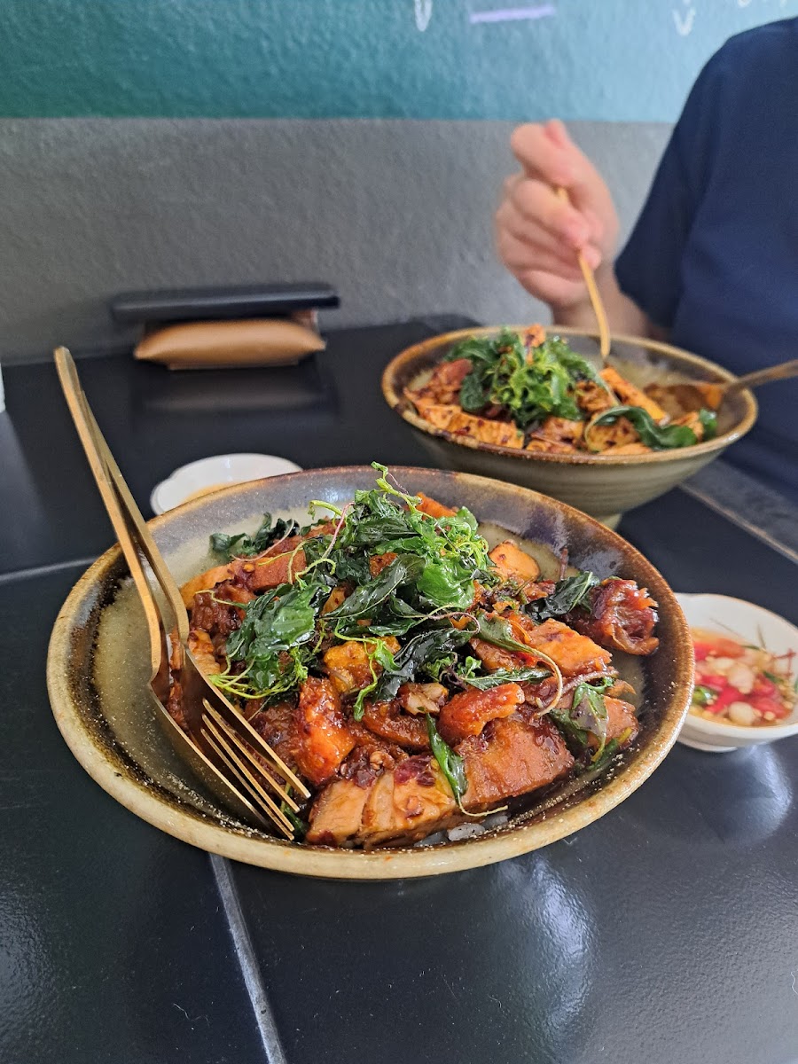 Super flavourful and delicious despite I asked for things to be not spicy, everything we ordered tasted very good and made us devoured all of the rice in an instant. Best meat with rice dishes of our Chiang Mai trip (we dined at a few Michelin recommended spots and they were ok but not good enough to have a lasting impression). You should definitely add a sunny-side-up egg, they did it perfectly, crispy on the edges with a delicate runny yolk in the middle. There’s no English menu but Google translate works well, the owner doesn’t speak a lot of English but was super friendly and we got everything we wanted and needed without issues. We arrived 15 to 20 mins before closing and they were so nice and didn’t mind us dining in. There’s free ice water and the place is nice and clean (not easy to find in this area). If you are staying at Thantara Resort, it is a no brainier to eat here, it’s gonna be at least 5 times cheaper than the resort restaurant and most likely better.